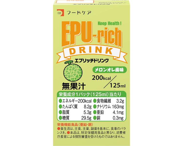 出荷単位:24大型商品の場合、追加で送料が発生する場合がございます。メーカー直送品です【JANコード】4528457088052・毎日の栄養摂取をおいしくサポートするエプリッチドリンク。・本品は多量摂取により疾病が治癒したり、より健康が増進するものではありません。1日の摂取目安量を守ってください。・亜鉛の摂りすぎは、銅の吸収を阻害するおそれがありますので、過剰摂取にならないよう注意してください。・乳幼児、小児は本品の摂取を避けてください。・本品は特定保健用食品とは異なり、消費者庁長官による個別審査を受けたものではありません。・食生活は、主食、主菜、副菜を基本に、食事のバランスを。 ●原材料/デキストリン、砂糖、植物油脂、難消化性デキストリン、大豆たん白、食塩、カゼインNa(乳由来)、乳化剤、安定剤(セルロース、カラギナン)、香料、pH調整剤、着色料(紅花、クチナシ)、グルコン酸亜鉛、グルコン酸銅●栄養成分(1パック当たり)/エネルギー:200kcal、水分:93。5g、たんぱく質:8。2g、脂質:5。3g、糖質:29。5g、灰分:0。4g、ナトリウム:163mg、カリウム:6mg、カルシウム:8mg、マグネシウム:1mg、リン:80mg、鉄:0。2mg、亜鉛:4。1mg、銅:0。3mg、ビタミンE:0。3mg、ビタミンB2:0。04mg、ナイアシン:1。6mgNE、ビタミンB6:0。01mg、食物繊維:3。2g、食塩相当量:0。4g●賞味期限/製造より8ヶ月●アレルギー/乳・大豆