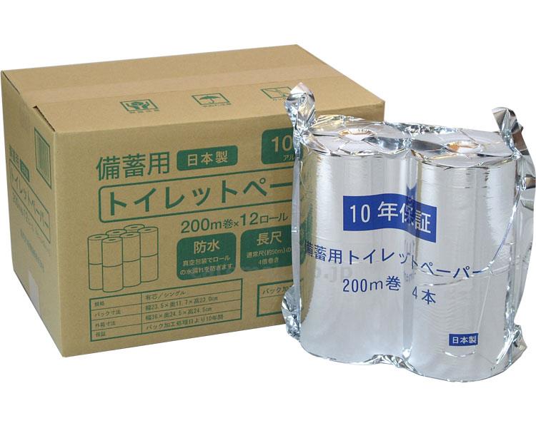 【※法人・施設限定・送料別途】【※受注生産】本商品は取り寄せ商品のため、お届けまでにお時間を頂きます。本商品は受注生産品のためお届けまでにお時間を頂きます。個人宅への配送ができない商品もございます。出荷単位:ケース大型商品の場合、追加で送料が発生する場合がございます。メーカー直送品です・長期保存:アルミ蒸着真空包装で湿気、カビ、害虫、ウイルスなどから長期間トイレットペーパーを守ります。・安心備蓄:有芯トイレットの為、強度があり災害に備え、安心して備蓄できます。大人1人で1ヶ月1ロール(※使用頻度個人差有り)・省スペース:通常トイレットのケースに対し、約1/3のコンパクト設計で保管スペースを軽減します。・長尺:通常トイレット(※60m換算)に対し約3.3倍あり、非常に経済的です。・10年保証:保証書付き ※ご希望の場合発行いたします。商品には同梱されておりませんので、ご要望の際、ご連絡ください)※ケース右下部に印字された加工処理月から10年間の保証。 ●内容量/4ロール×3パック●サイズ(約)/パック: 幅23.5×奥行11.7×高さ23cm、梱包:幅36×奥行24.5×高さ24.5cm●シングル芯有りタイプ●受注生産/納期約1週間●生産国/日本