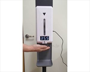 大型商品の場合、追加で送料が発生する場合がございます。メーカー直送品です【JANコード】4955286809402・非接触で温度計測と消毒を自動で行うので、感染のリスクもなく安心です。・AC電源・電池どちらでも使用可能なため、店舗やオフィス、公共施設の入口など設置場所を選びません。・手をかざすだけで消毒液が噴射されるので、お子様や高齢者の方でも簡単に消毒と検温が行えます。・手をかざすと、アルコール噴射と同時に表面温度を計測。・計測温度が設定温度を超えるとブザーでお知らせ。設定温度以下の場合は「表面温度は正常です」とアナウンス。・1,000mLの大容量タンク。・アルコール噴射時に手をLEDライト(紫色)でたらします。※アルコール液は付属していません。※アルコール液以外のご使用になれません。 ●サイズ/φ40.8×高さ107~160cm●重さ/4.5kg●材質/鉄(黒染メッキ)●温度設定/35.0~42.0℃(0.1℃単位)●音量設定/OFF、1~4に設定可能●付属品/組立用工具、ACアダプタ(1.5m、PSEマーク適合)、空ボトル、鍵、POP●生産国/中国●要組立