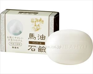 【※取り寄せ・送料別途】本商品は取り寄せ商品のため、お届けまでにお時間を頂きます。【※取り寄せ・送料別途】大型商品の場合、追加で送料が発生する場合がございます。お取り寄せ商品のため、日数がかかります【JANコード】4993982017011・純馬油を主原料にして、釜炊きけん化手法で作ったお肌にやさしい石鹸です。・独特のやわらかい泡が、お肌の汚れをつつみ込み、きれいに落とします。・泡切れがよく、すすぎによる肌荒れが少ないので、純オイルクレンジングと石鹸でメイクを落とすダブル洗顔にもお使いいただける化粧石鹸です。・赤ちゃんやデリケートなお肌の方にもお使いいただけます。洗顔に、また浴用や洗髪にもお使いいただけます。・ニキビ・あせもを防ぎます。・お肌を健やかに洗浄します。 ●成分/石けん素地(馬油・パーム油・水・水酸化Na・パーム核脂肪酸・塩化Na)、クエン酸Na