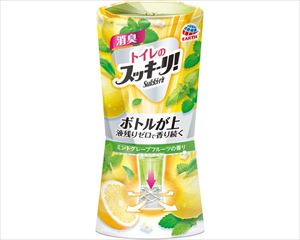 大型商品の場合、追加で送料が発生する場合がございます。メーカー直送品です【JANコード】4901080623218・スッキーリ!独自の消臭芳香システム「ボトルが上」で上から下に液が落ちるから(1)最後の一滴まで香りがしっかり続く。(2)振らなくても液残りゼロで使い切れる。(3)香りの質が安定、いつでも新鮮な香り。・3種の消臭剤がトイレのイヤなニオイをしっかり除去。・ミントグレープフルーツの香り:みずみずしいグレープフルーツに、凛としたミントの香りを合わせた、さわやかな香りです。・使用期間は、1.5~3ヵ月です(温度や使用環境により変動します)。※本品は飲めません。子供や第三者の監督が必要な方がいるご家庭では誤飲に注意してください。※使用中は安定した場所に置き、倒れないようにしてください。※液がこぼれた場合、シミ・変色の原因になることがあるので、すぐに拭き取ってください。●成分/香料(天然精油配合)、非イオン界面活性剤、植物抽出物(植物系消臭剤)、イオン系消臭剤、強力デオドライズパウダー(無機系消臭剤)●用途/トイレ用芳香・消臭剤●生産国/日本