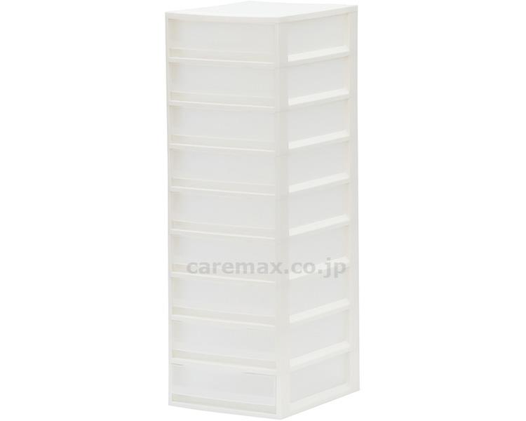 メーカー直送品です【JANコード】4904746078728・書類やファイル、はがきなどの整理・収納に最適な収納ケースです。引出しの抜け落ちを防ぐストッパー付きです。・ホコリが溜まりにくいデザイン。・抜け落ちを防ぐ引出しストッパー付き。●サイズ/最大外寸:約幅27×奥行35×高さ81cm、有効内寸:約幅22×奥行31.5×高さ7cm(×9段)●材質/ポリプロピレン●収納の目安(各引き出し)/A4用紙約500枚●積み重ね使用/不可●生産国/日本