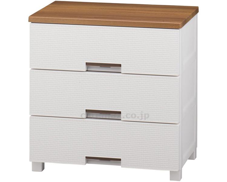 ●サイズ/最大外寸:約幅65×奥行41×高さ66cm、有効内寸:約幅57×奥行34.5×高さ15cm(×3段)●重さ/約10kg●材質/本体・引出し・ロック・ローラー:ポリプロピレン、脚:ポリプロピレン・ポリエチレン(すべり止め)、前パネル:スチロール樹脂、天板:MDF化粧板●収納の目安(各引き出し)/トレーナー:約10枚、セーター:約6枚、Yシャツ:約8枚●耐荷重/天板:約10kg、引出し:約5kg●付属品/すべり止め付専用脚×4●生産国/日本