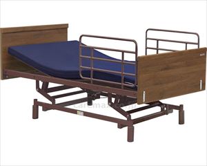 【※法人・施設限定・送料別途】個人宅への配送には別途送料がかかります。大型商品の場合、追加で送料が発生する場合がございます。メーカー直送品です【JANコード】4582589670707・床面高さ無段階調整可能です。※個人宅直送時の日時指定は一切不可●サイズ/全幅97.5×全長203.5×全高71~101(無段階)cm、床面高:28~58cm●材質/ヘッドボード・フットボード:ウォールナット柄プリント紙化粧繊維板、ボトム・サイドレール:スチール・樹脂●電源/AC100V●最大使用者体重/90kg●セット内容/本体、サイドレール2本、マットレス●標準機能/背上げ(0~70°)、脚上げ(0~35°)●生産国/中国