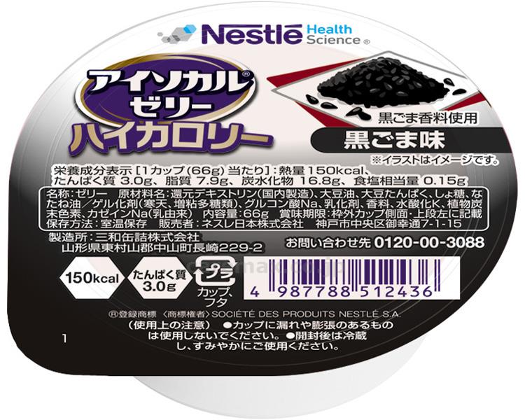 お取り寄せ商品のため、日数がかかります【JANコード】4987788512436・1カップ(66g)で150kcal、たんぱく質3g摂取できる栄養補助食品です。・医療・介護現場で最も使用されているカップゼリー。・およそ15口で完食でき、150kcal補給可能。・常温保存が可能。・凍らせるだけで、溶けないアイス風デザートに!・温めても美味しくお召し上がりいただけます!・かき混ぜてとろみ状に!かき混ぜて氷か冷水を入れてアイスドリンクに!・黒ごまらしい香ばしさとコクが後を引く、上品な和の味わい。●原材料/還元デキストリン(国内製造)、大豆油、大豆たんぱく、しょ糖、なたね油/ゲル化剤(寒天、増粘多糖類)、グルコン酸Na、乳化剤、香料、水酸化K、植物炭末色素、カゼインNa (乳由来)●栄養成分/(66g当たり)エネルギー150kcal、たんぱく質3.0g、脂質7.9g、炭水化物16.8g、食塩相当量0.15g、水分38g、カリウム20mg、リン28mg●アレルギー/乳・大豆●賞味期限/製造後1年●生産国/日本